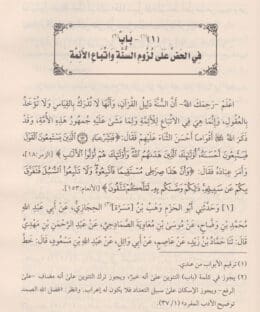 – سبب تأليف الكتاب: قال المؤلف -رحمه الله- في مقدمة كتابه: “فإنّ بعض أهل الرغبة في اتباع السنة والجماعة سألني أن أكتب له أحاديث يشرف على مذاهب الأئمة في اتباع السنة والجماعة، الذي يُقتدى بهم، وينتهي إلى رأيهم وما كانوا يعتقدونه ويقولون به في الإيمان بالقدر، وعذاب القبر، والحوض، والميزان، والصراط، وخلق الجنة والنار، والطاعة والشفاعة، والنظر إلى الله عز وجل يوم القيامة … لما سأل عن تأليف هذا الكتاب، وزادني رغبة فيه، ما رأيته من حرصه على تعلم ما يلزم تعلمه، ولا عذر لجاهل في ترك السؤال والبحث عن أصول الإيمان والدين، وشرائع المسلمين، وقد ألزمه الله عز وجل ذلك بقوله: ” اسْأَلُوا أَهْلَ الذِّكْرِ إِنْ كُنْتُمْ لَا تَعْلَمُون ” [النحل : 43]، وكذلك لا عُذر لعالم في كتمان ما يُسأل عنه مما فيه كتاب ناطق، أو سنة قائمة، عمن يجهله…”.