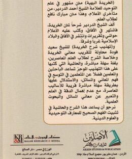 اسم المؤلف لمتن الخريدة وشرحها : احمد الدردير