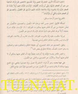 الباب الرابع والخامس: في صفة القدر والعلم وغيرهما. وهنا يتحدث في الصفات الإلهية وينفي الجسمية (التجسيم) وينفي أيضاً قيام الحوادث بذات الله. ثم يخصص مسألة كلام الله ويناقش معظم الفرق في هذا الأمر. ويخلص إلى اعتبار كلام الله (القرآن الكريم) قديم خلافاً للمعتزلة.
